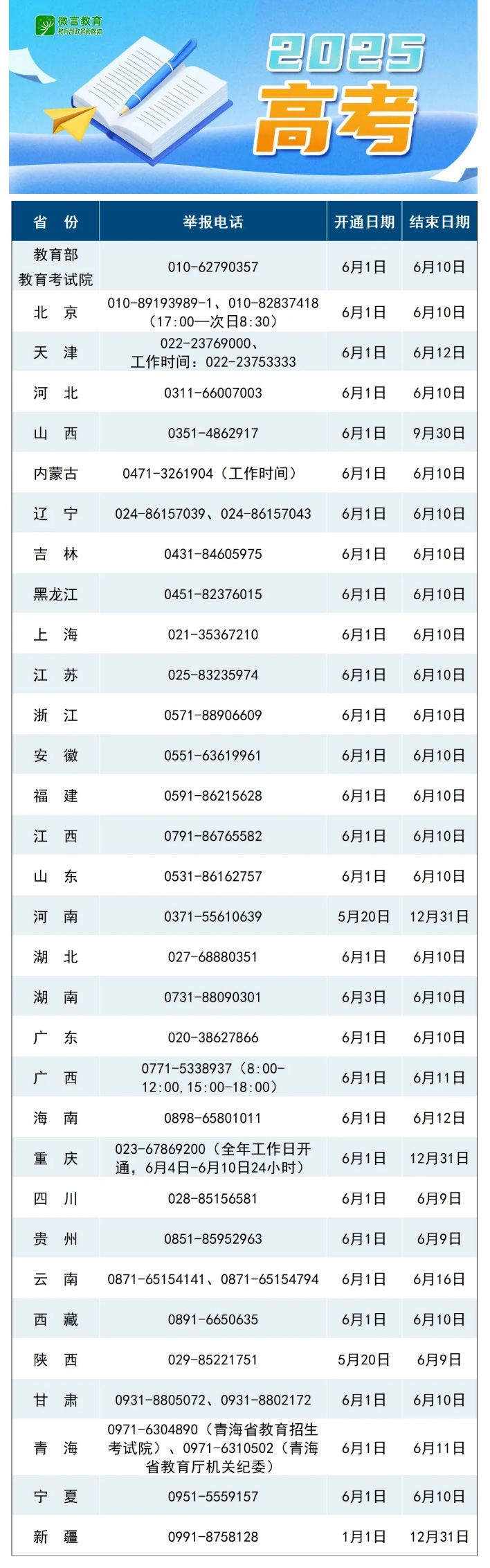 教育部和各省(区、市)开通2025年高考举报电话 - 求是网
