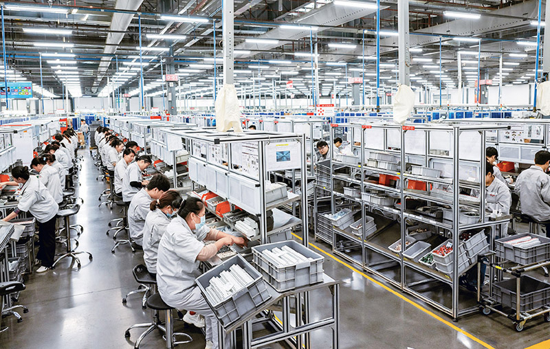 近年来,一些地区持续优化营商环境,助力企业稳产扩能,扩大用工规模,实现经济发展与民生保障双赢。图为2025年11月13日,安徽省芜湖市湾沚区新芜经济开发区一家企业工人在生产线上作业。 中新社发 肖本祥/摄