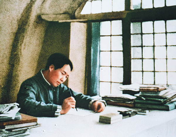图为1938年,毛泽东同志在延安窑洞撰写《论持久战》(资料照片)。 新华社发