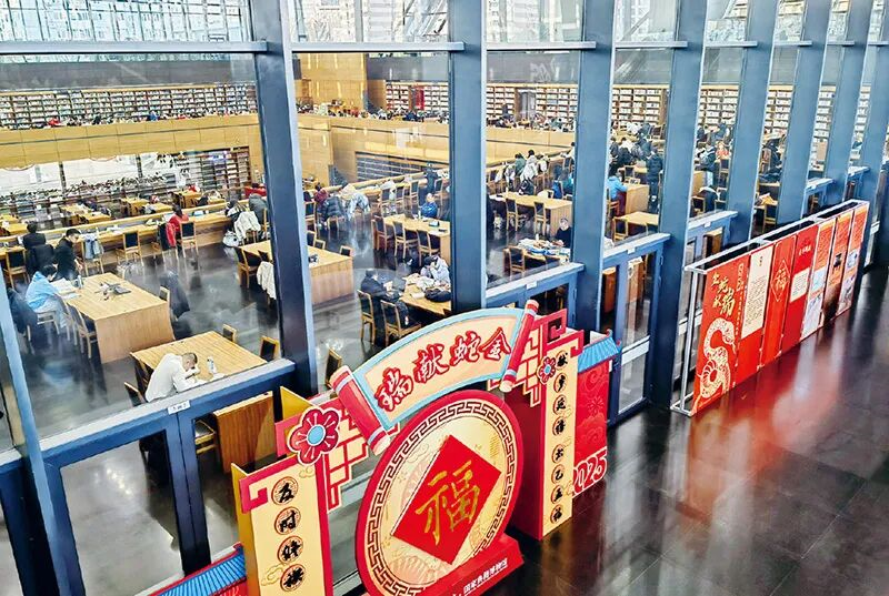 书香年味两相宜,新春“充电”正当时。图为2025年1月29日,大年初一,许多市民选择到国家图书馆阅读图书,在浓浓的书香中过大年。 视觉中国 樊甲山/摄