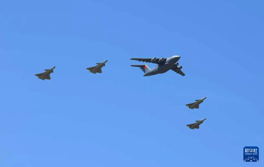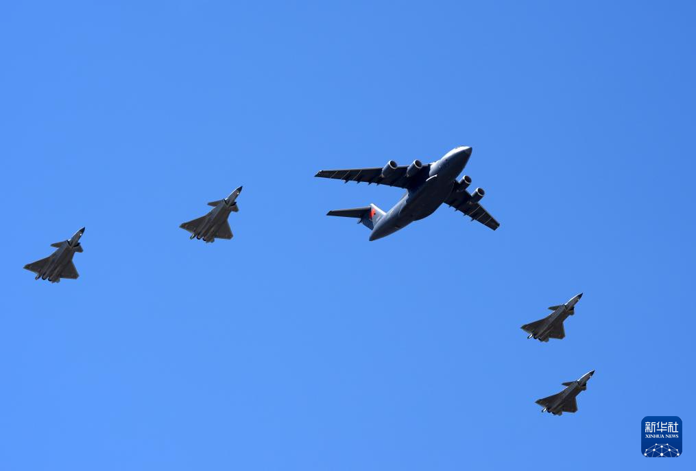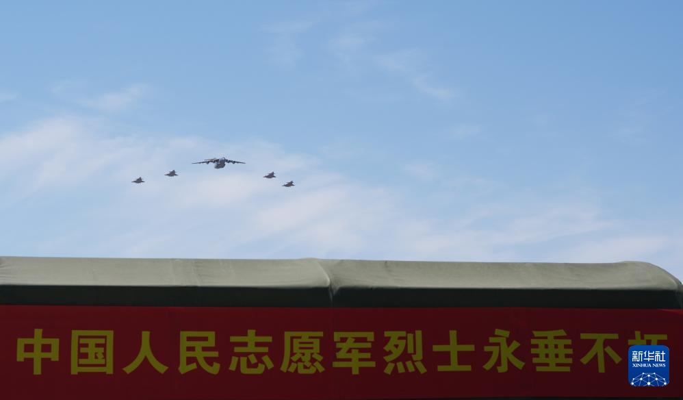4月22日,第十三批在韩中国人民志愿军烈士遗骸由中国空军运-20B从韩国接回辽宁沈阳。“双20”五机编队列阵长空致以崇高敬意。4月22日上午,第十三批在韩中国人民志愿军烈士遗骸由中国空军运-20B从韩国接回辽宁沈阳。12位志愿军烈士英灵及146件遗物回到祖国怀抱。新华社发(余红春 摄)