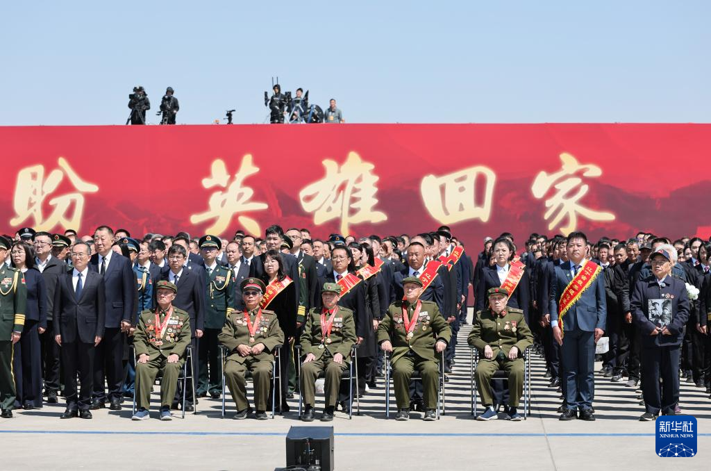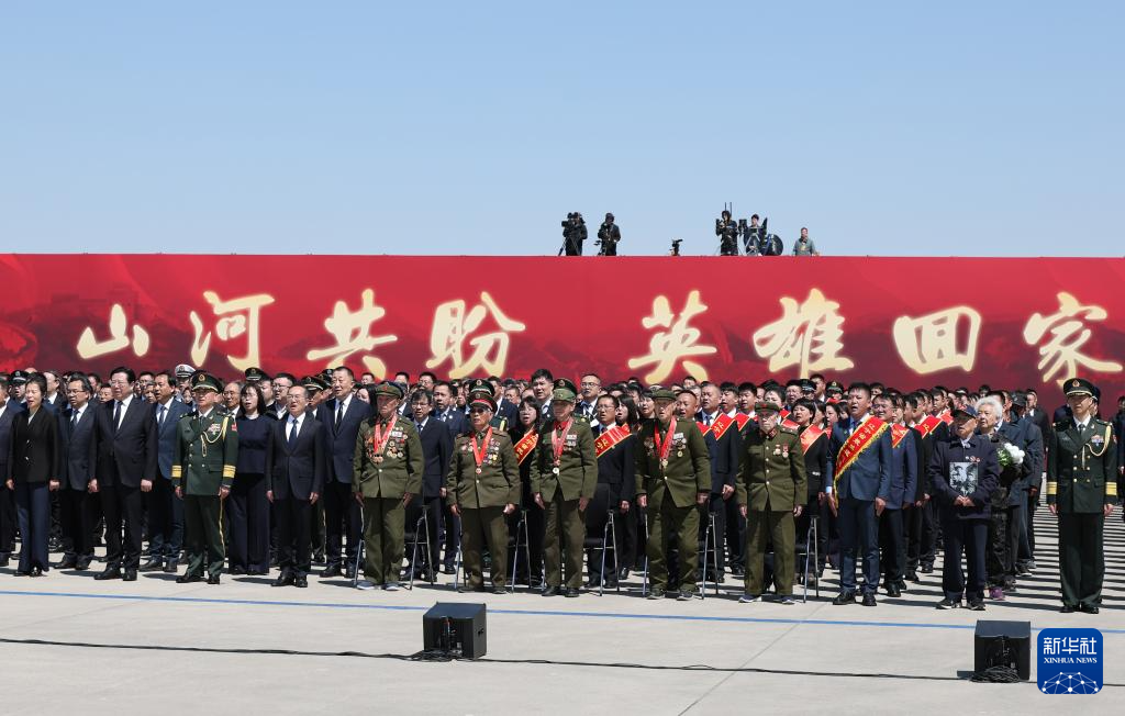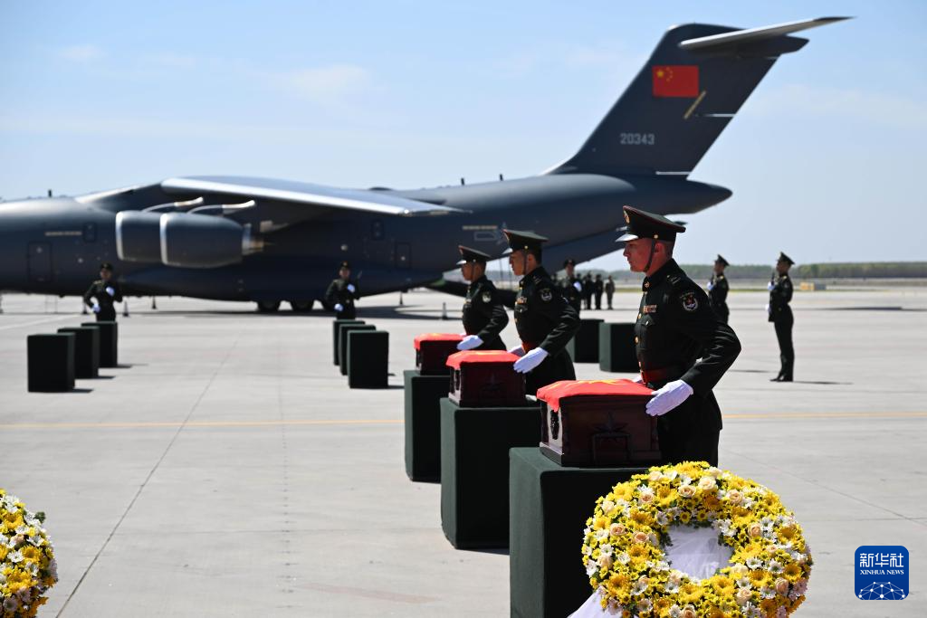 4月22日,第十三批在韩中国人民志愿军烈士遗骸由中国空军运-20B从韩国接回辽宁沈阳。这是迎回仪式现场。4月22日上午,第十三批在韩中国人民志愿军烈士遗骸由中国空军运-20B从韩国接回辽宁沈阳。12位志愿军烈士英灵及146件遗物回到祖国怀抱。新华社发(余红春 摄)
