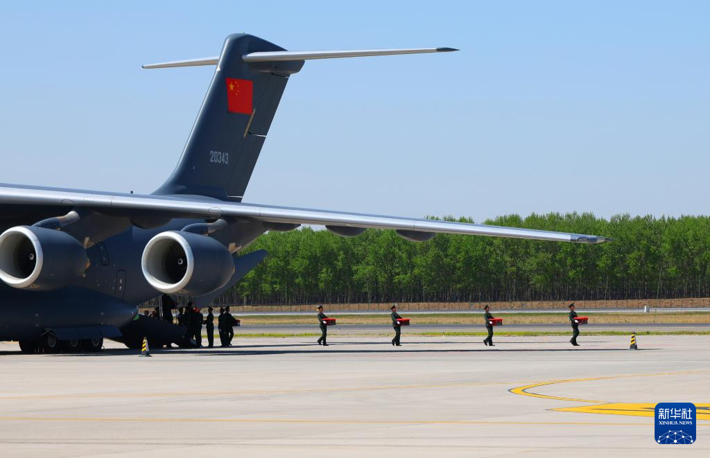 新华社沈阳4月22日电(记者刘艺、丁非白)第十三批在韩中国人民志愿军烈士遗骸22日上午由中国空军运-20B从韩国接回辽宁沈阳。12位志愿军烈士英灵及146件遗物回到祖国怀抱。