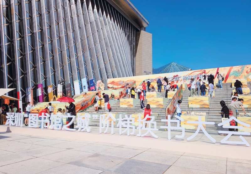 新时代以来,各地组织开展了形式多样的全民阅读活动,为书香社会建设提供了重要载体。图为2025年11月举办的深圳“图书馆之城”阶梯换书大会。 视觉中国供图